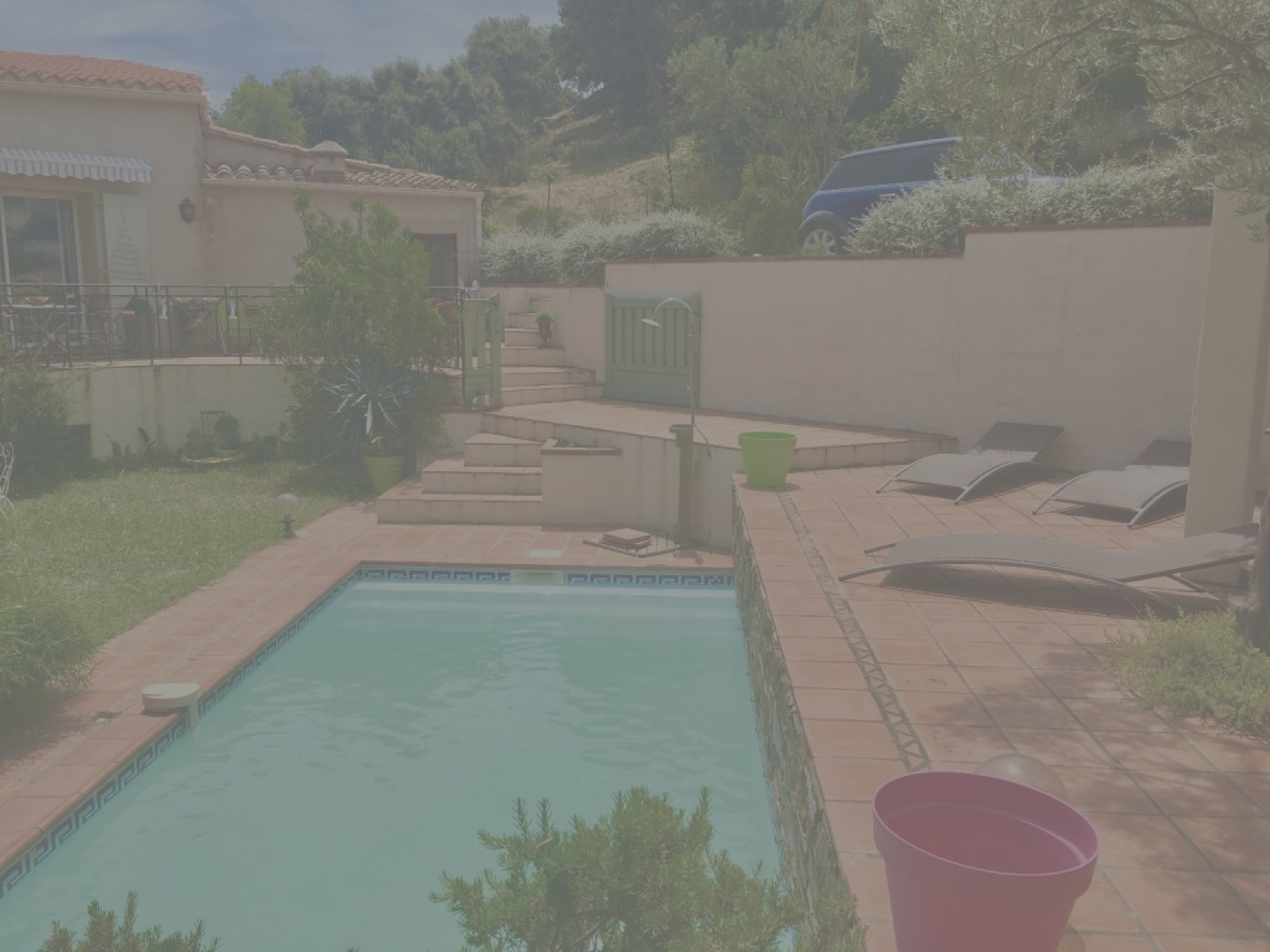 Construite sur très belle parcelle de terrain de 480m², joliment arborée et avec une vue agréable, elle est agrémentée d’une piscine et d’une cuisine d'été.