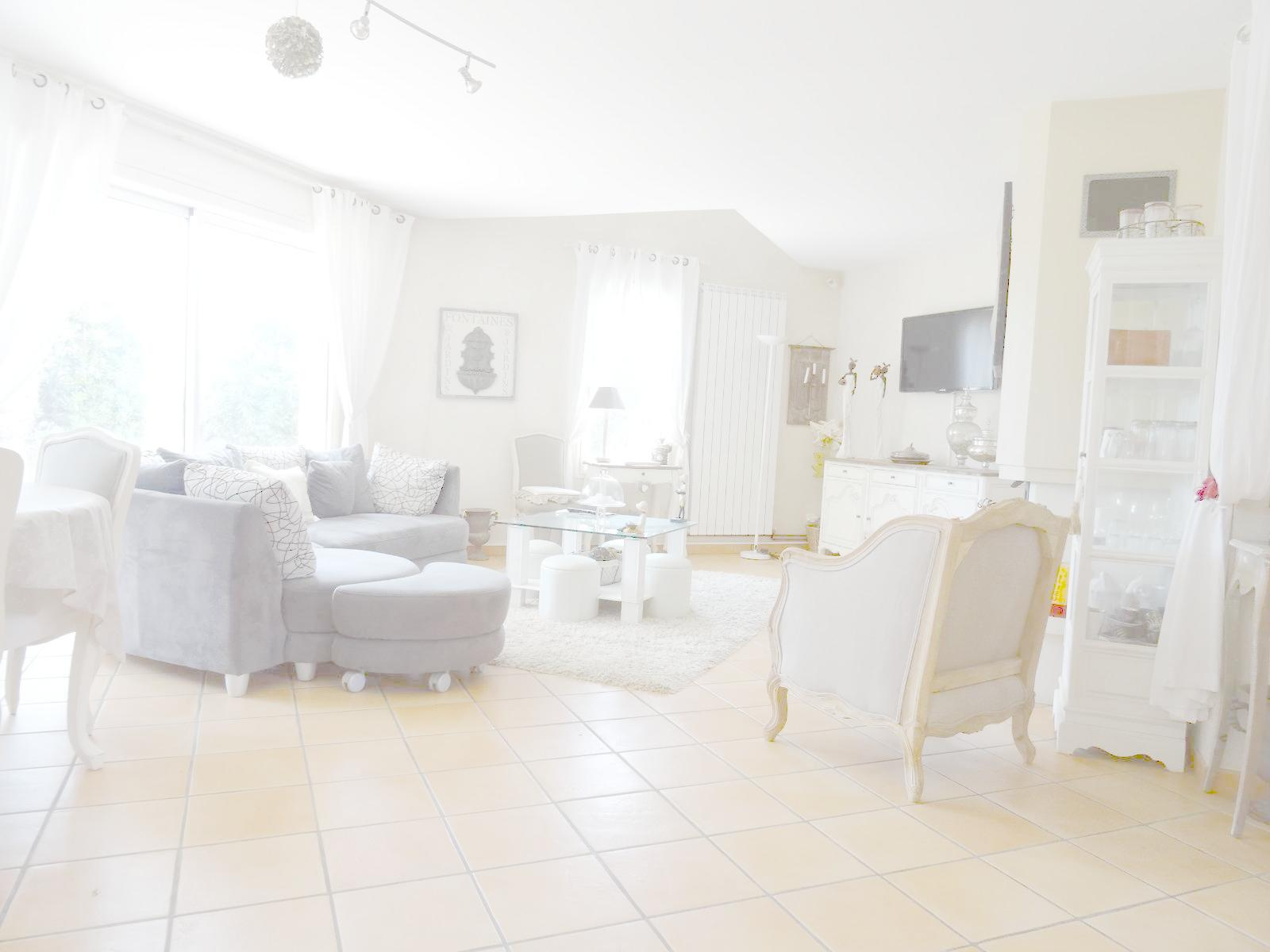 Pièce de vie 46m² vec cuisine US entièrement équipée et cheminée avec Insert, 5 chambres, 2 salles de bains, cellier, garage (24m²).