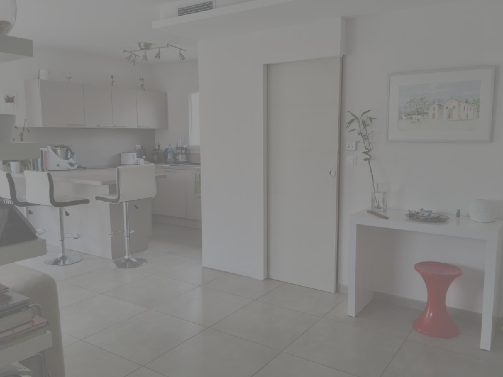 Elle dispose d'une entrée avec placards, d'un salon-séjour avec cuisine US entièrement aménagée et équipée,